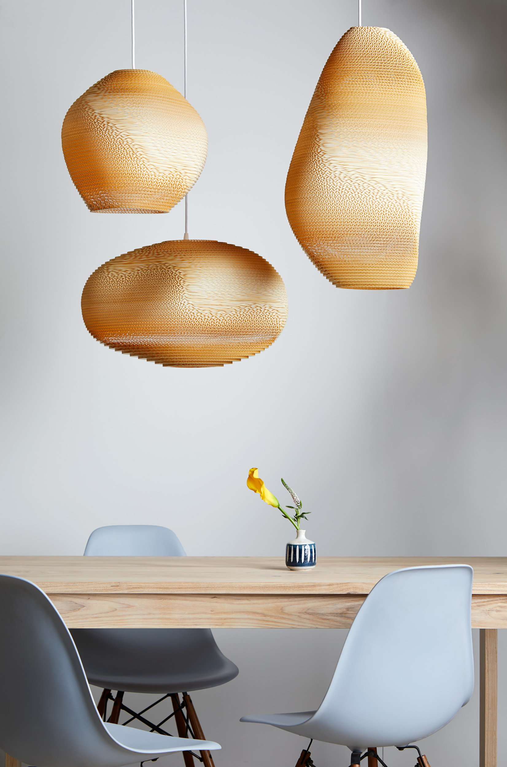 Handcrafted from recycled cardboard, Graypants’ flagship Scraplights provide warm, intimate, and functional lighting for any occasion or space. Tough and elegant, each is precision cut with a laser and assembled by hand using non-toxic adhesive, and all Scraplights are treated with a non-toxic fire retardant.