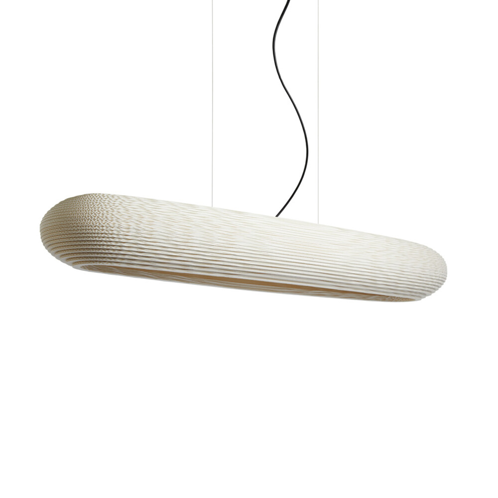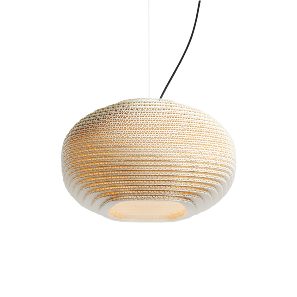 Handcrafted from recycled cardboard, Graypants’ flagship Scraplights provide warm, intimate, and functional lighting for any occasion or space. Depending on the finish, each piece of a Scraplights fixture is precision-cut with a laser or knife – Natural and Blonde welcome the subtle patina of the edge burn from the laser, while the White finish requires the use of a knife to achieve the pristine, white edges. Tough and elegant, each fixture is assembled by hand using non-toxic adhesive, and all Scraplights are treated with a non-toxic fire retardant.