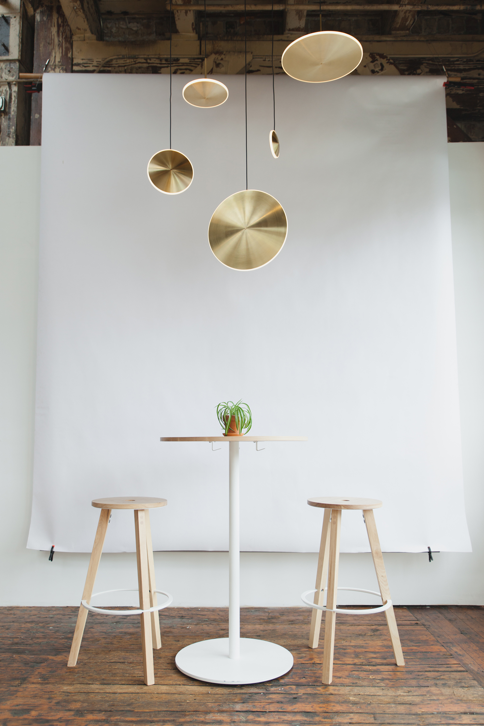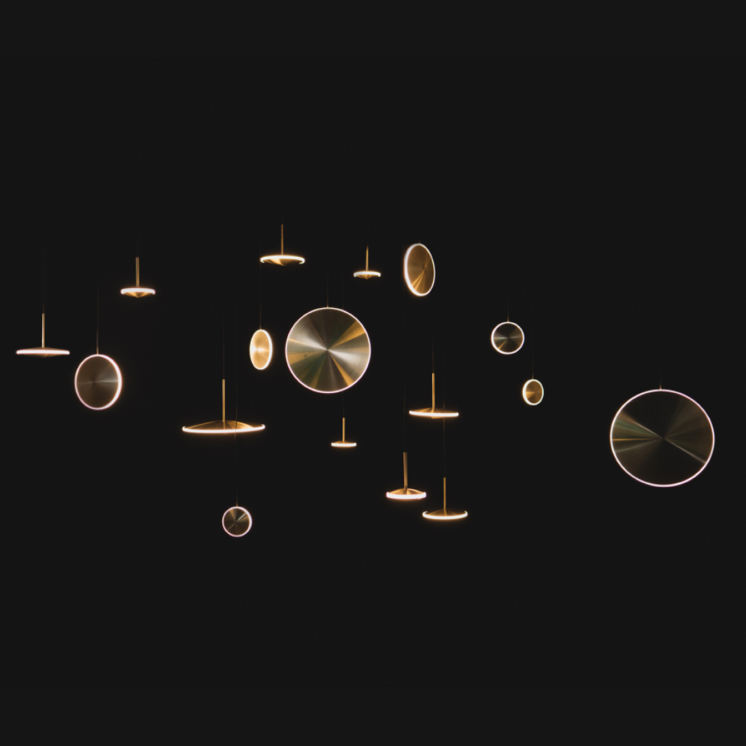 Mimicking the phosphorescent envelope found around stars, Chrona lights create a luminous glow by combining spun brass and diffused acrylic. With a variety of configurations in both horizontal and vertical orientations, Dish pendants can be clustered together to make stunning constellations or individually hung to accentuate any space. Thin, yet robust, the pendants are available in diameters ranging from 6 to 17 inches (14-42cm).