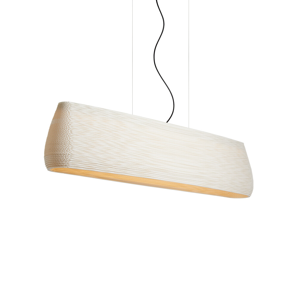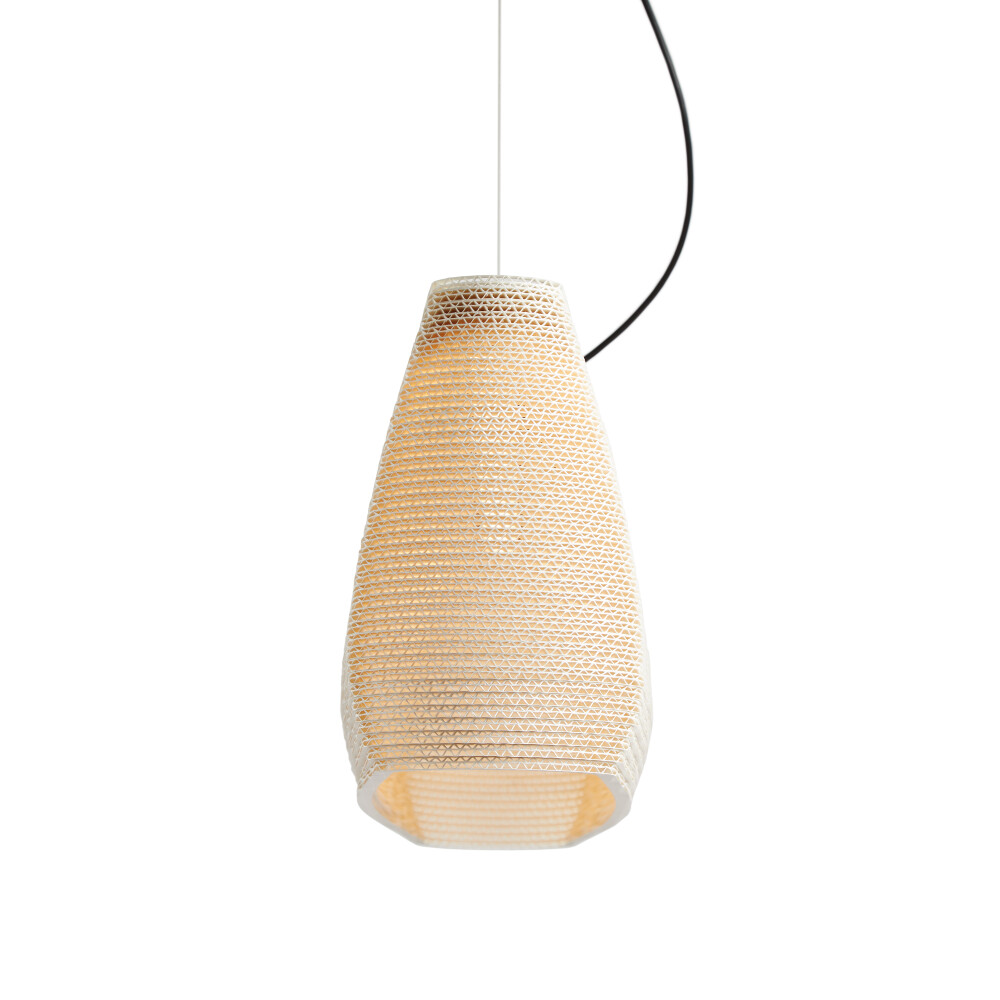 Handcrafted from recycled cardboard, Graypants’ flagship Scraplights provide warm, intimate, and functional lighting for any occasion or space. Depending on the finish, each piece of a Scraplights fixture is precision-cut with a laser or knife – Natural and Blonde welcome the subtle patina of the edge burn from the laser, while the White finish requires the use of a knife to achieve the pristine, white edges. Tough and elegant, each fixture is assembled by hand using non-toxic adhesive, and all Scraplights are treated with a non-toxic fire retardant.
